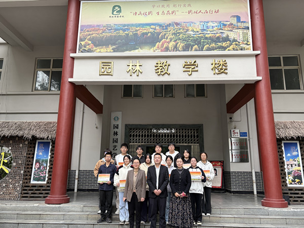 会后与会人员在园林楼前合影,此次座谈会为学子搭建了专业成长与行业交流的平台,激励园林园艺学子以荣誉为起点,在专业道路上继续绽放光芒。