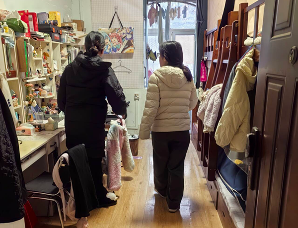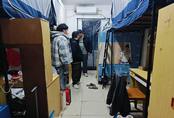 随后,在学院领导和辅导员的带领下,青训营学生分组深入各学生宿舍楼,开展全面、细致的排查。检查重点围绕宿舍用电安全、消防安全、环境卫生等方面展开。检查过程中,老师与同学们亲切交流,了解他们的假期安排,再次叮嘱离校前务必切断电源、关好门窗,注意人身与财物安全,并温馨送上了新年祝福。