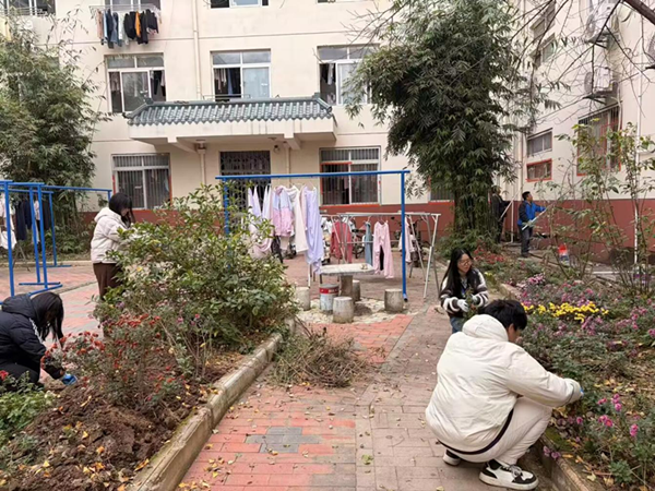 12月10日上午,我院国家助学金学生代表于学府西三寝室楼栋,开展以“绿满校园,安筑家园”为主题志愿服务行动,用专业与责任为学生公寓和校园注入温暖力量。