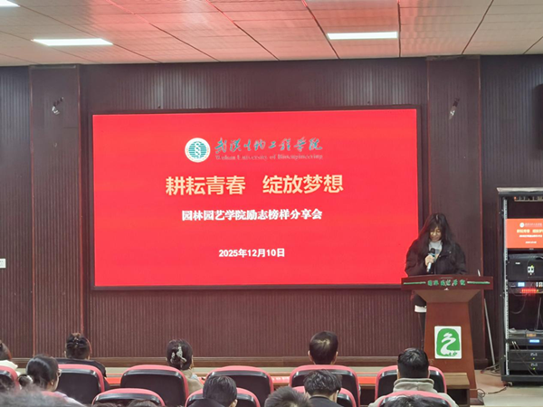 (通讯员 陈香君) 2025年12月10日下午,园林园艺学院在阶二报告厅举行“耕耘青春 绽放梦想”励志榜样分享会。本次大会旨在通过挖掘优秀学子的真实经历,发挥朋辈引领作用,激励广大学生在学业与生活中追求卓越。学院党政班子成员、各班班长、团支书及部分无课师生代表参加会议。