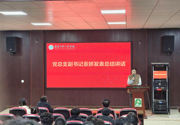 院党总支副书记董妍作总结讲话。她充分肯定了此次分享会的意义,并对在场同学提出三点期望:“以榜样为敬,明确发展方向;以榜样为标,积蓄前行力量;以榜样为范,绽放青春光芒。”