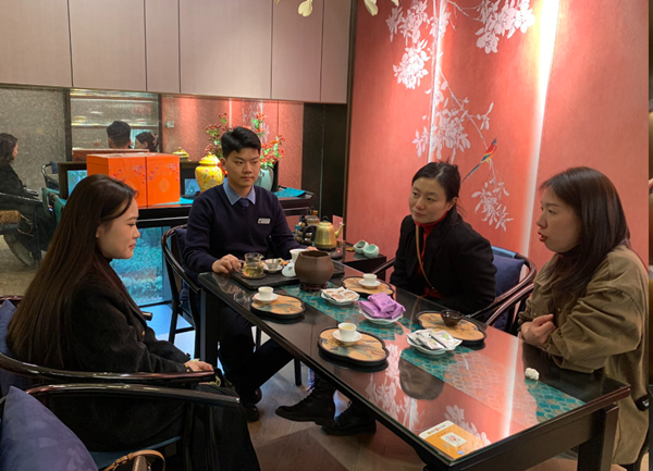 在天福茗茶校企双方围绕“人才培养、技术创新、成果转化”等主题展开座谈。企业负责人介绍了当前茶行业向智能化、绿色化、综合化转型的趋势,目前企业多维度开发的新产品,辐射不同客户群,希望与学院在新产品研发、制茶工艺优化等领域开展深度合作。董妍书记表示,访企拓岗是学院落实高校服务产业发展的重要举措,学院将以企业需求为导向,持续优化人才培养方案,完善课程体系,培养更多适应行业产业升级的高素质人才。