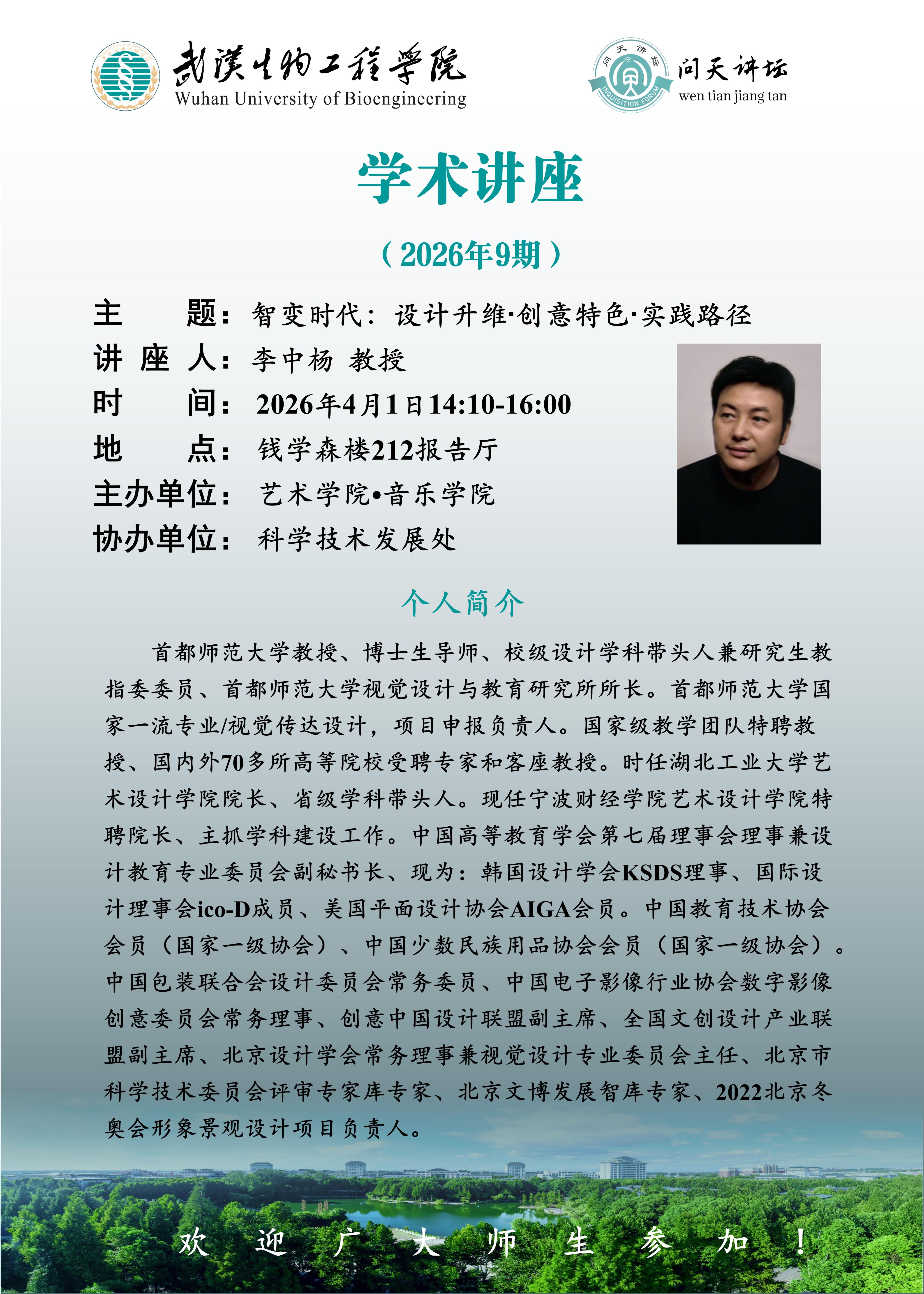 美育浸润系列活动之美育论坛—— 李中杨教授《智变时代:设计升维·创意特色