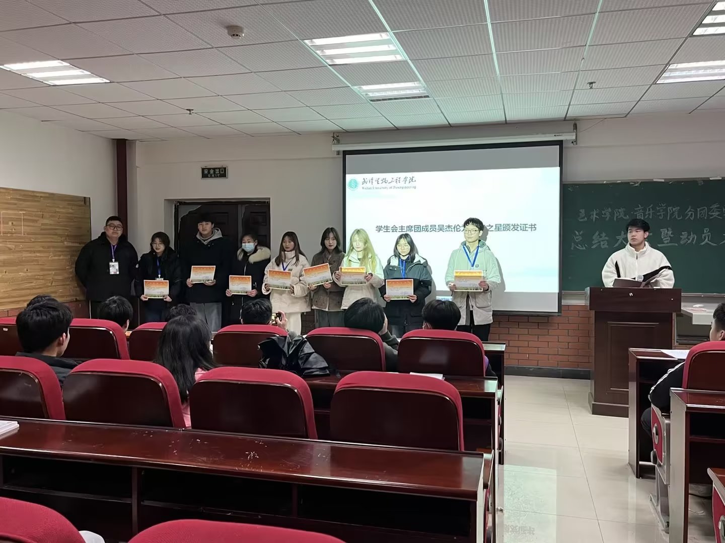 大会伊始,由主持人宣布会议正式开始,会议第一项由学生会主席团成员吴杰伦为部门之星颁发奖状。会议第二、三项由学生会主席杨宏敏为优秀干部、优秀部门颁发奖状,这充分表明了对干事工作的肯定,高涨了干事对未来工作的激情。会议第四项由学生会主席团成员周江浩做2022-2023学年工作总结。会议第五、六项由学生会优秀干事与干部代表涂宏宇、贾冬冬进行发言。会议第七项由学生会主席团成员赵家琛做2022-2023学年第二学期工作规划。