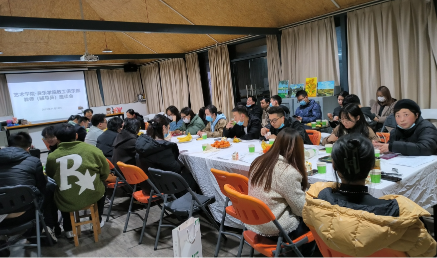 (通讯员 牛巧巧 摄影 牛巧巧)为贯彻党的群众路线,主动开展调查研究,广泛听取教职工意见,进一步促进我院教风学风建设,激活第二课堂活力,艺术学院•音乐学院于11月28日晚上开展了教工俱乐部教师(辅导员)座谈会。会议由学院党总支书记、常务副院长阎轶娟主持,校理事会秘书长、校委会副主任蔡红生、学院全体无课教职工参加了座谈会活动。