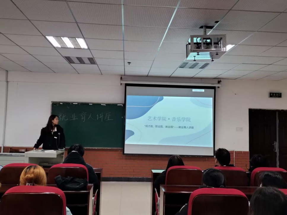 本网讯(通讯员:陈曦刘家馨 摄影:青协干事)为近一步推进大学生就业指导工作,帮助大学生了解就业形式,提升就业方法。2022年12月1日12:00艺术学院·音乐学院组织开展“成才观、职业观、就业观”为核心的就业育人主题讲座。此次讲座由党总支副书记陈海浪老师主持。