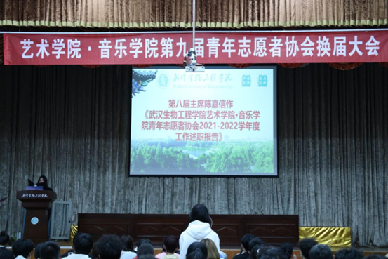 大会伊始,由主持人罗进怡播放了一段2021-2022学年度总结视频。由青年志愿者协会主席陈嘉信作《武汉生物工程学院艺术学院·音乐学院青年志愿者协会2021-2022学年度工作述职报告》。报告中陈嘉信学姐表达了自己对于分团委青年志愿者协会发展的心得,感谢长时间以来分团委青年志愿者协会成员们在工作上的积极配合,在学院活动举办上的支持与鼓励,并希望新任部长担当起自己的责任,与部员们携手共进。 大会第二项由协会秘书长叶芷伊宣读《武汉生物工程学院艺术学院·音乐学院青年志愿者协会关于第九届学生干部人事任命决定》。随后为第九届各部门部长佩戴工作证。大会第三项进行艺术学院·音乐学院青年志愿者协会会旗交接仪式,青年志愿者协会主席陆鑫雅作《武汉生物工程学院艺术学院·音乐学院青年志愿者协会2022-2023学年度工作规划报告》希望青协同学努力学习,脚踏实地,积极奉献创造,用积极的行动去书写青年志愿服务的辉煌篇章,为学校营造出更好的志愿服务氛围。大会末尾,由分团委书记陈曦为第八届各部门部长颁发聘书,总支副书记陈海浪为第八届主席团颁发聘书并对大会做出总结,对新一届的部长们寄予更高的期望,鼓励新一届的干事们,带动身边更多的人加入其中,共同建设。