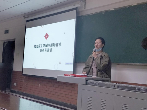 大会伊始,主持人罗进怡播放开场视频切入大会主题。随后由第九届主席团主席陆鑫雅进行动员讲话,指出志愿之路任重而道远,需要每位志愿者共同努力,并要求各部长做好志愿者的工作的同时为其后发展做出努力。接着由主席陆鑫雅为第八届优秀干事颁发奖状,希望大家可以向他们学习,保有一颗积极向上的心,为共同建设美好青协而奋斗。