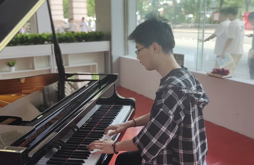 随着长笛的声音悠悠响起,空灵悦耳。紧随其后钢琴声音徐徐传来。二者合为一体,《渔歌唱晚》被缓缓奏出,极其动人,使下课的同学纷纷驻足。