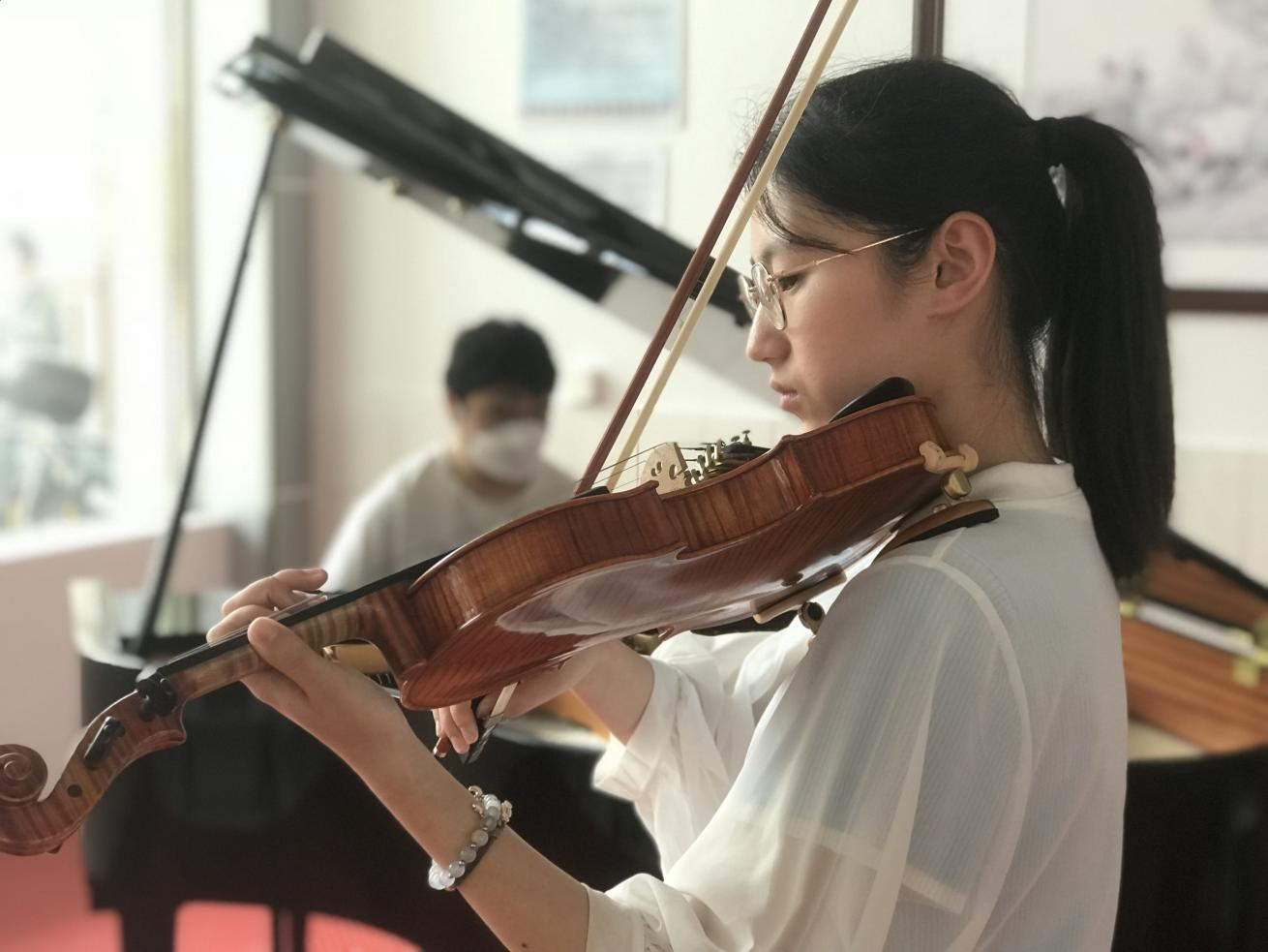 图为安哲昊(钢琴)、吴瑀馨(小提琴)演奏《梁祝》