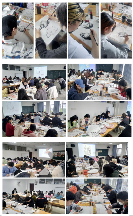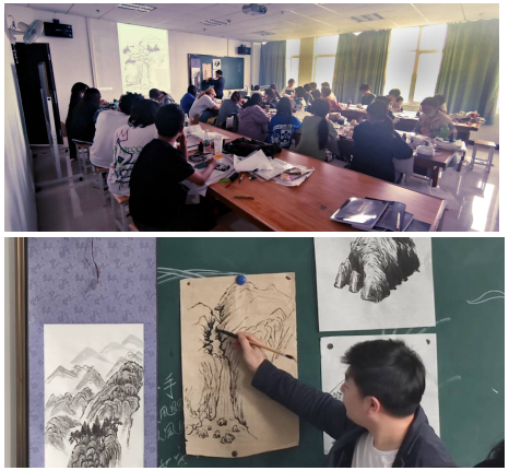据悉,本学期选修《中国画》课程学生均为国画零基础,如何让学生了解国画、爱上国画、会画国画?这对于朱华老师来说是个不小的挑战。朱华老师精心设计教学,保证每堂课中学生都有高质量的学习收获;他在教学过程中观察学生的学习情况和绘画基础,结合动画专业的特点,在根植传统国画技法教学的基础上,注重课堂教学形式的互动性,注重学生学习结果的探究性和个性化。