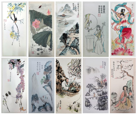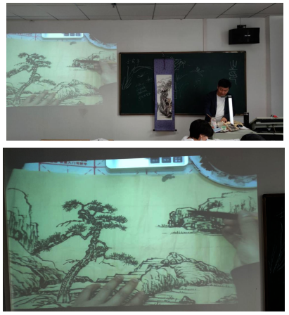 同时,朱华老师在教学过程中也在不断尝试运用现代信息技术以及多媒体资源开展课堂教学工作。他发现通过A3实物展台进行示范教学,能让学生更加直观的学习国画的绘画步骤以及笔墨技法,能较为整体的照顾到全班同学的学习和观摩,提高课堂学习质量。通过开展形式多样的示范教学,学生的绘画水平显著提高。