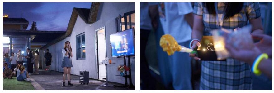 “本次把我唱给你听音乐沙龙,从一声问候唱给父母,不忘父母养育之恩、一次探望唱给母校,铭记母校培育之恩、一份祝福唱给老师,回报老师教诲之恩和一句感悟唱给同学,感悟大学真情四个部分出发。借此让同学们都能怀着感恩之心,串联起同学们对大学四年间与同窗校友的美好回忆和对师长亲友的感恩之情,也是送给大家毕业前的最后一份礼物!”校美术馆执行馆长韩泽琼老师开场致辞后,艺术学院和外国语学院的毕业生们纷纷围坐在美术馆三楼草坪,随着悠扬的旋律,挥舞着手中的荧光棒。