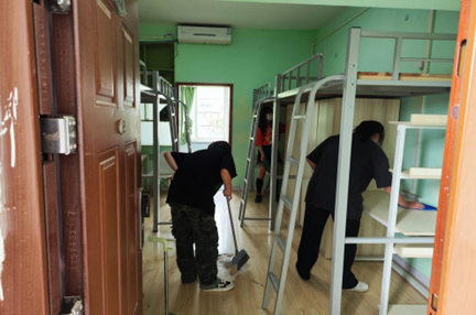 在整个清扫过程中,大家没有丝毫懈怠,力求做好迎新第一步,在部长们的带领下干事们自备工具有序开展清扫活动,他们擦拭桌椅、清洁地板,从床板床沿,到衣柜桌椅,都进行了彻底清洁,不留下任何一个卫生死角。在干事们的共同努力下,新生宿舍面貌焕然一新,做到了窗明几净,舒适温馨。最后,各部门部长对干事们的宿舍卫生打扫工作进行了验收,确保环境的干净整洁后,干事们有序离场。