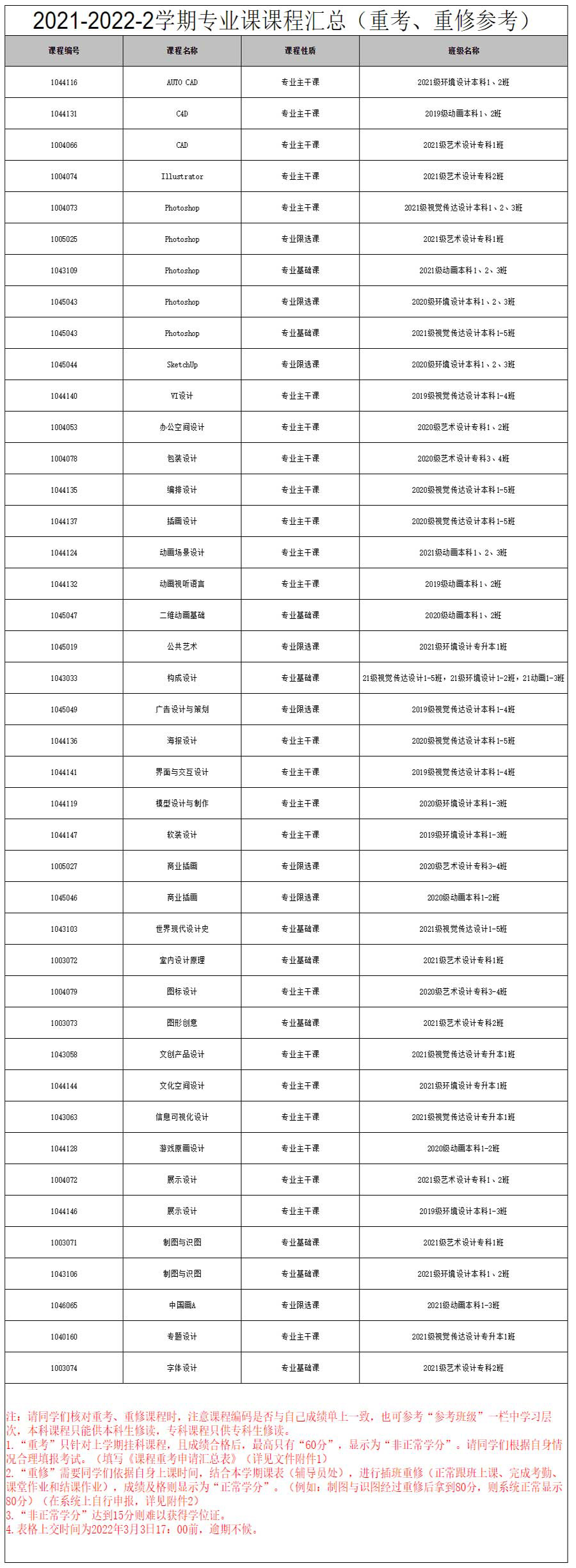 2021-2022-2学期专业课课程汇总(重考、重修参考)
