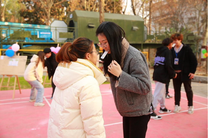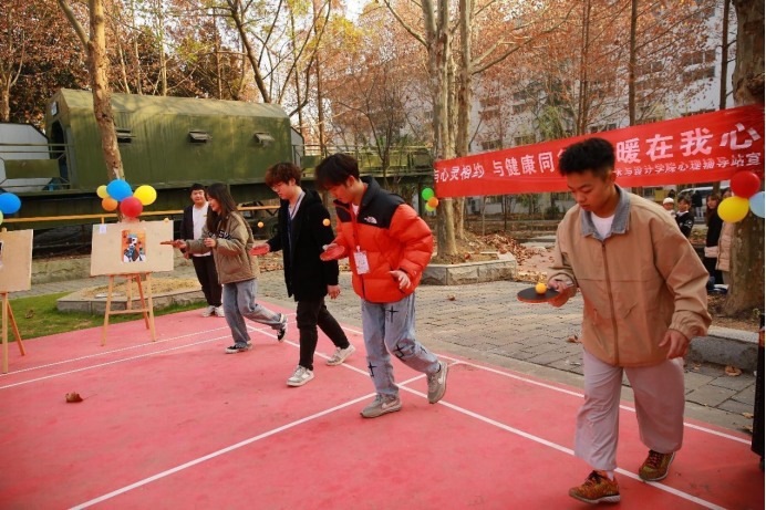 据悉,本次活动面向全校师生,分为线上和线下两部分展开,线上采取征稿投票的方式,在官方QQ发起“温暖伴我行”艺术绘画大赛活动;线下策划设计了“温暖伴我行”团队合作游戏,其中“乒乓球接力赛”考验着同学们的速度、耐心,突显了参与者的心理素质,“传递面粉”展现了团队组织、协作能力,“纸衣往返接力”贴纸奔跑上演了“速度与激情”,“螃蟹接力赛跑”夹气球奔跑则是体现了同学们良好的默契。此次游戏环节各辅导员老师也参与其中,老师们纷纷表示在游戏中释放了压力,并加强了师生之间的情谊。在欢声笑语中我们迎来了最后的“别怕,有我在”留言板活动,横幅上写有展望未来、激励人心的句子,也写有为身边朋友加油打气的励志名言。