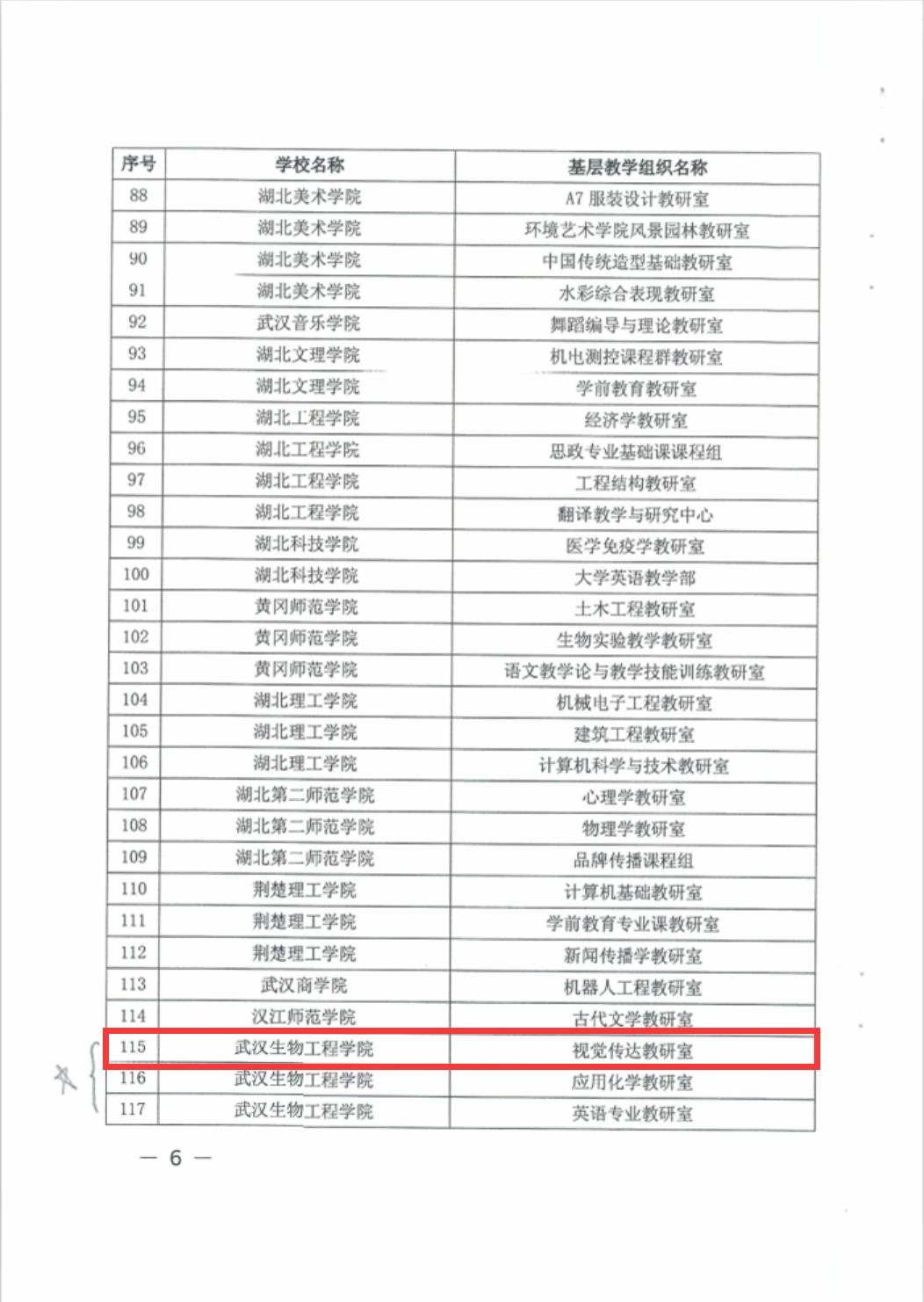 图为视觉传达教研室入选省级优秀基层教学组织名单获批文件