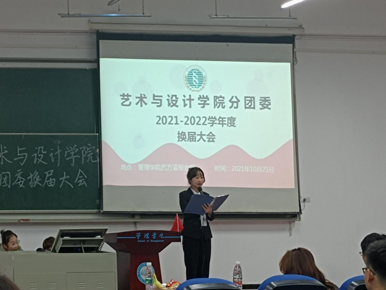 本网讯(通讯员柳芯雨 摄影 青协干事)2021年10月21日17:00,艺术与设计学院分团委换届大会于管理学院西方蓝报告厅举办。出席本次活动的人员有党总支副书记陈海浪老师、艺术与设计学院组织员李源老师、分团委书记陈曦(男)老师、艺术与设计学院辅导员汪涛、刘子萱、芮雪、陈曦(女)、第七届青协骨干成员、第八届青协全体成员、第十二届学生会骨干成员、第十三届学生会全体成员以及各学院青协主席团代表、各学院学生会主席团代表及各协会代表。