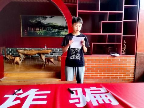 活动最后,老师们和同学们自发的在横幅上签名,以此来警示自己,防诈骗于未然。