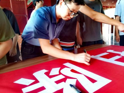 (图为师生自发在横幅上签名)