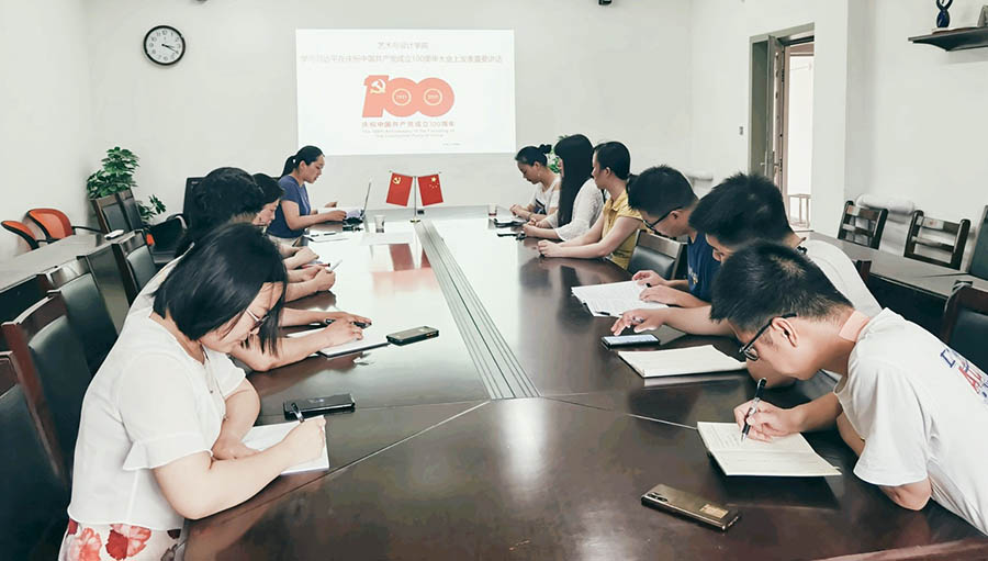 (通讯员阎轶娟摄影牛巧巧)7月1日下午,艺术与设计学院党员教师在院会议室认真学习习近平总书记在庆祝中国共产党成立100周年大会上的讲话,学院党总支书记阎轶娟主持会议,党员教师结合所看所学所感畅所欲言。