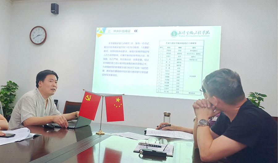 环境设计教研室主任凡鸿老师介绍了本学期所开展的活动,如期初、期中的听课评课以及毕业设计指导工作,特别指出了环境设计专业教研组在产学研工作方面的出色工作以及在校园环境的改进工作中所做出的成绩,他也提出了教研室成员的教科研能力需要提高、学校教学资源欠缺等相关问题,同时也希望本教研室成员今后能更加夯实教学和科研工作。