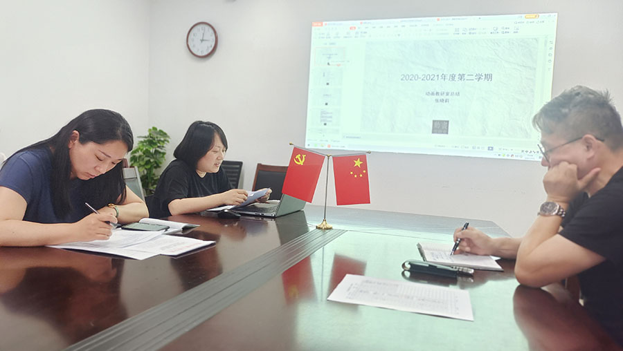 动画教研室主任张晓莉老师就本学期教学常规工作、教学研究成果等方面相关工作进行了总结,并提出动画设计专业的课程需要与时俱进,为学生未来的就业打好基础。