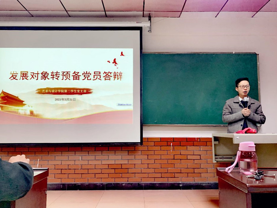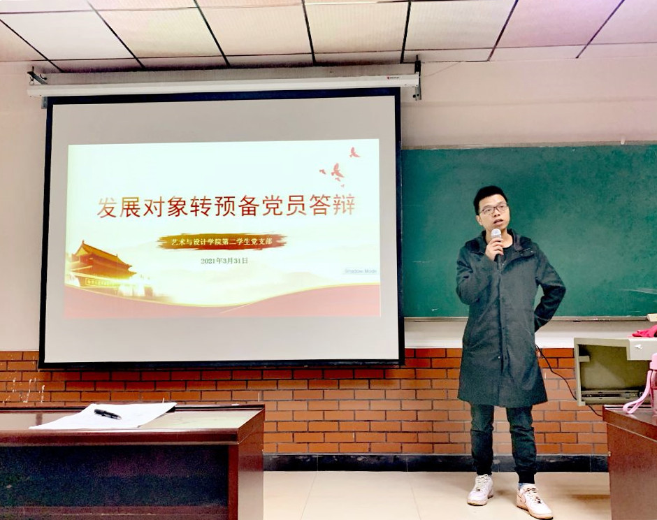 本网讯(通讯员:汪涛 摄影:吴秀珍)2021年3月31日,艺术与设计学院第二学生党支部在钱学森大楼212召开发展对象转预备党员大会。大会由支部书记汪涛主持,学院党总支副书记陈海浪和其他5名党员老师参会,105期、106期、107期入党积极分子共计75人现场观摩学习。