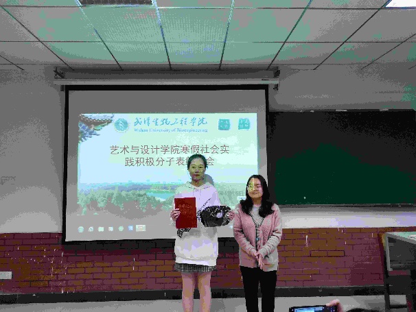 随后,陈曦老师为社会实践标兵卢文清颁发证书,曹雨薇老师为李佳伟等12名社会实践先进个人颁发证书,汪涛老师为曾庆宇等34名社会实践积极分子颁发证书。