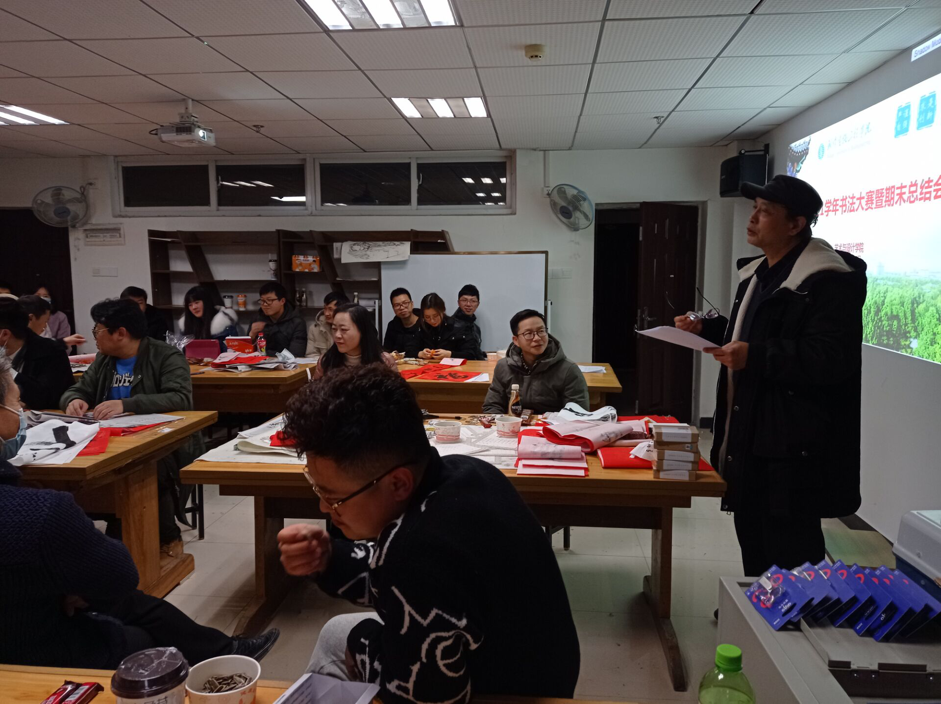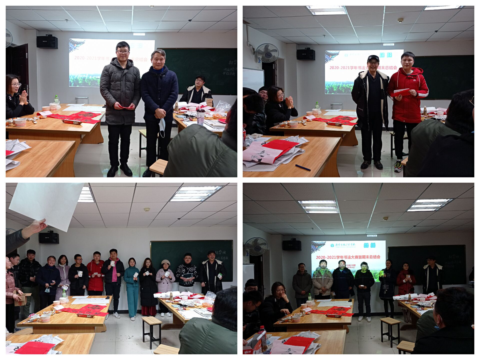 (通讯员:牛巧巧 摄影:肖丽 牛巧巧)为积极倡导全体教师勤练教学基本功,展现我院教师风采,在2021新春来临之际,1月16日下午,艺术与设计学院在钱学森楼706举办书法大赛暨2020年总结会。艺院书法爱好教师以展才艺、贺新春为主题创作参赛作品;并对2020年工作表现突出的老师给予肯定与鼓励,现场气氛热烈。