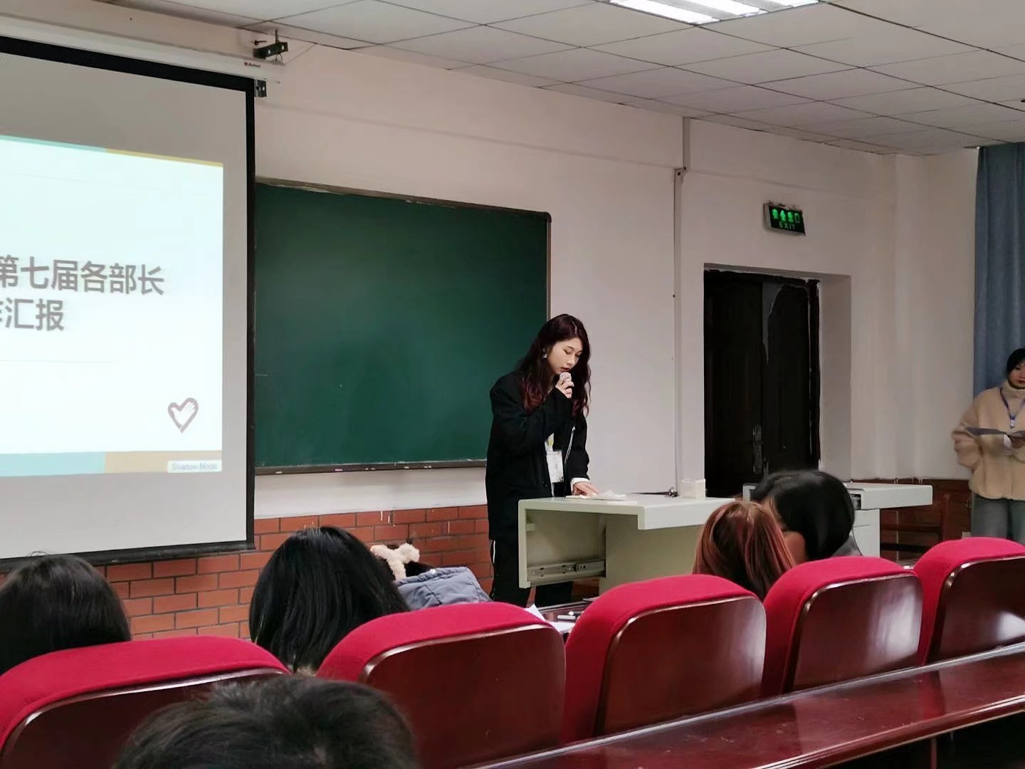大会开始,由青协主席胡珍珍作动员讲话,在讲话中对本学期已展开的工作做出总结,并对青协每一位成员在以后的工作中于积极性,能力提高等方面做出一定的建议。随后,由各部门部长依次发言,分别从部门所开展的工作,参与的活动以及对部门人员进行整体评价和往后工作的期待。等几个方面做详细的报告。在大会的最后由副主席卢麟做此次大会的总结,希望大家继续以积极的心态,良好的状态完成每一次任务,共同为建设更好的青协而努力。