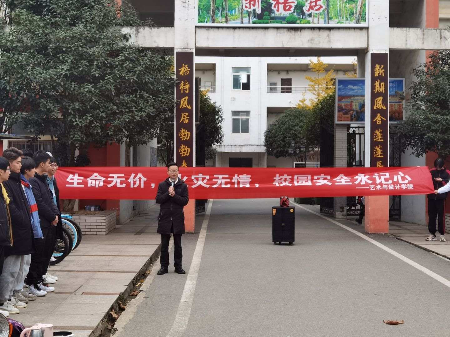 本网讯(记者 吴秀珍 摄影 熊祉煜)12月2日下午,艺术与设计学院组织学生在北二公寓楼下进行主题为“生命无价,火灾无情,校园安全永记心”的火灾疏散和消防演练活动。艺术与设计学院党总支副书记陈海浪,分团委书记李源,以及学生干部在现场调度。