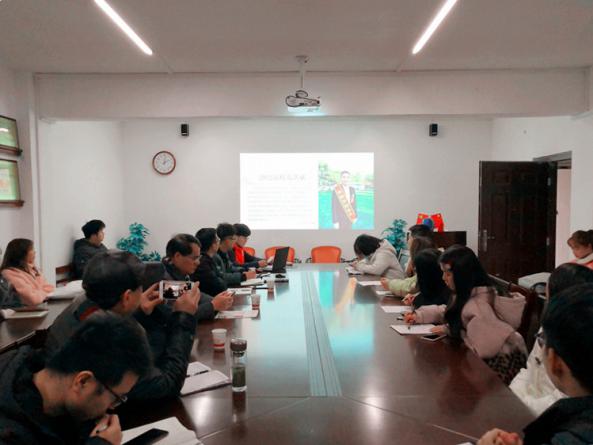 本网讯(记者吴秀珍摄影牛巧巧)12月7日下午,艺术与设计学院在西裙楼312会议室举办“励志成才新时代,感恩共圆中国梦”国家奖助学学生座谈会暨全国劳动模范、我校校友苏风驰、洪斌事迹学习会。学校副校长向三久,艺术与设计学院常务副院长尹继鸣、全体政工干部、获助学生代表参加会议。会议由党总支副书记陈海浪主持。