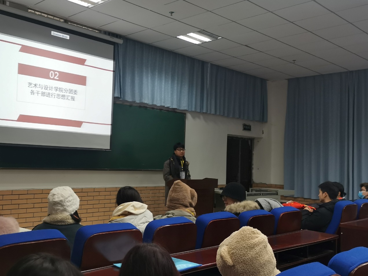 本网讯(通讯员鲍佳琪摄影青协干事)为响应党组织号召、让学生更加了解工匠精神,艺术与设计学院分团委于2020年12月11日中午12点在钱学森大楼201开展学习我校优秀校友苏风驰、洪斌二人优秀事迹观影活动。参加本次活动的有艺术与设计学院分团委全体成员。本次活动由青协文艺部任宇轩主持。