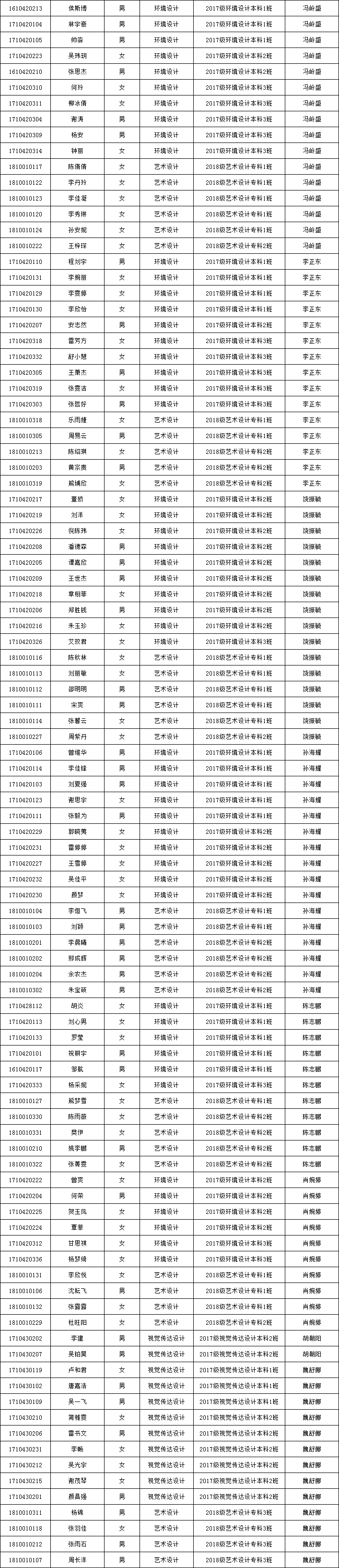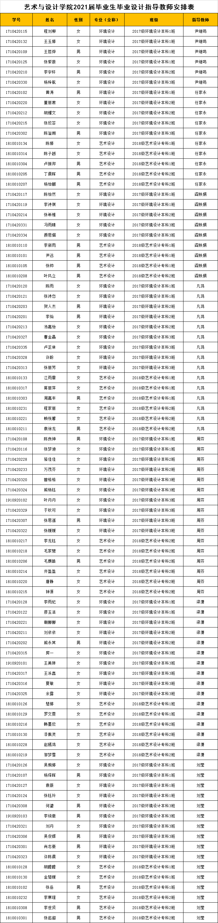 艺术与设计学院2021届毕业生毕业设计指导教师安排表