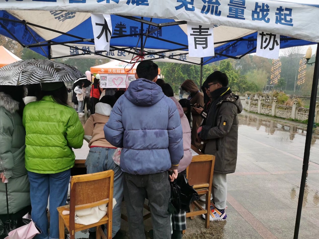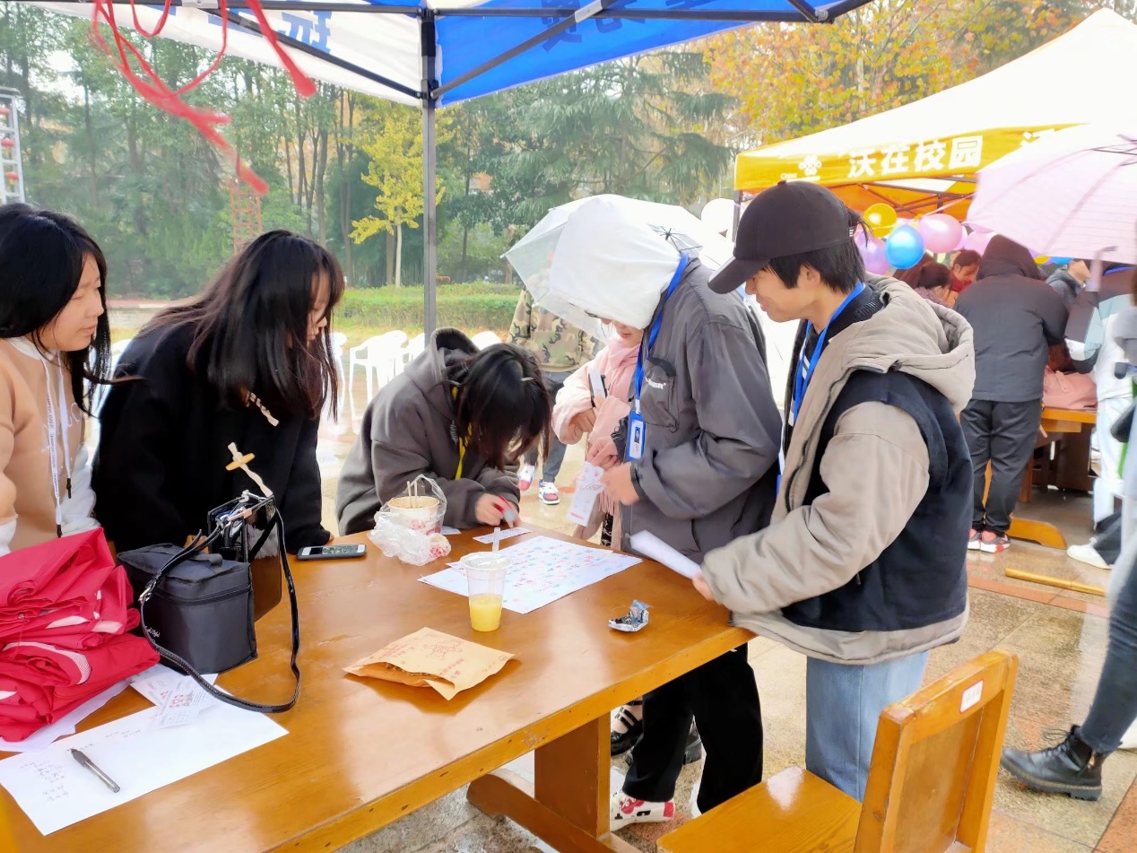 在活动开展的前一天,我院志愿者们就陆续到达现场布置摊位,搬桌椅、打扫现场卫生,摆挂装饰品等。十一月的清晨,寒风凛冽,但会场的中央却被温暖层层环绕。志愿者们满怀着热情与欣喜,期待着同学们的到来。