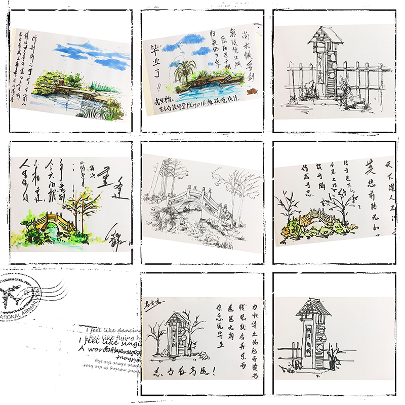 2020年6月25日,毕业生第一天返校,16级环境设计专业的同学在学校如茵山听老师讲述了“画信”的故事后,师生一起游走校园,从钱学森大楼出发,途径静思园、如茵山、桐月客栈、科技文化生态走廊等校园经典打卡地。在这些位置重新拾起手中的画笔,描绘美丽的校园,通过“画信”寄相思,讲述与武生院的故事。从内心出发,用简单、朴实的画笔去表达对母校和同学真实的情感。