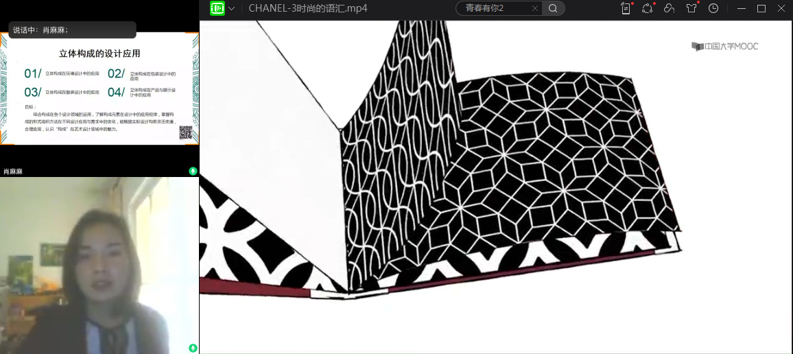 图为肖丽老师《构成设计》课堂通过经典视频案例讲解立体构成的设计应用