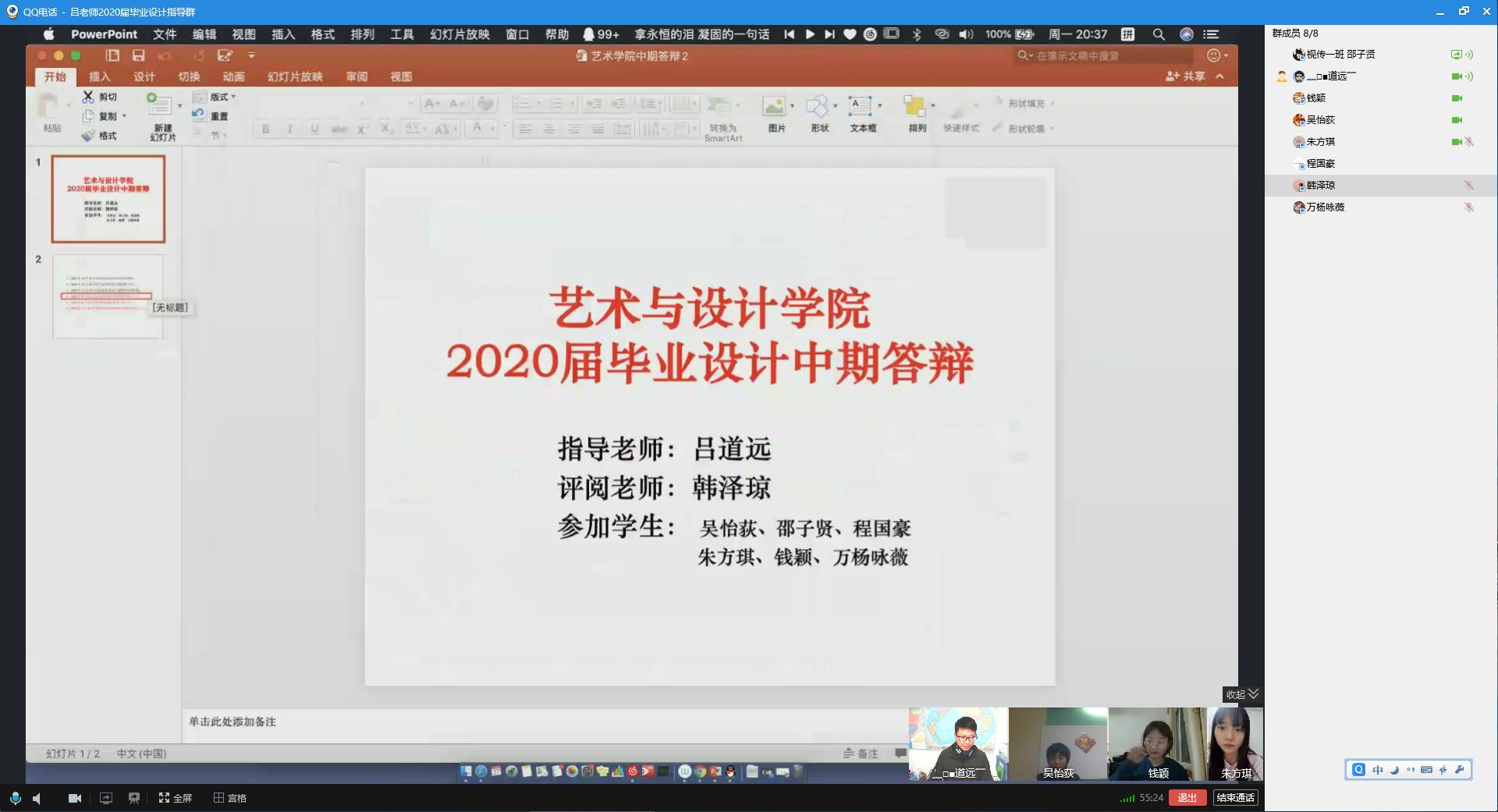 图为吕道远老师通过QQ视频直播为学生讲解中期答辩事项