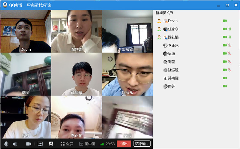 图为环境设计教研室针对阎轶娟老师的公开课进行在线研讨