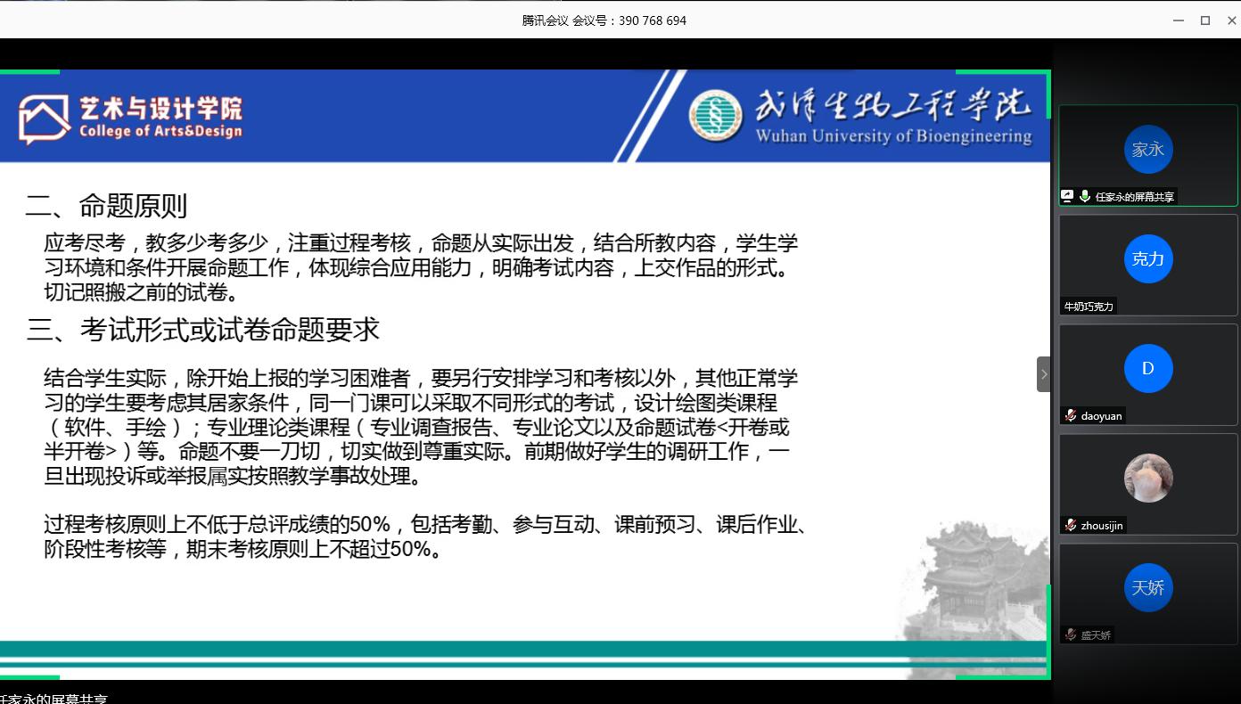 图为艺术与设计学院期末考试命题及阅卷工作培训会线上会议截图