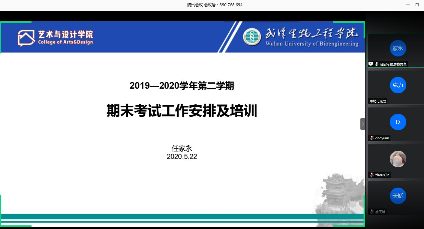 本网讯(通讯员 夏镇杰孙方方)2020年5月22日下午,艺术与设计学院通过腾讯会议,召开了2019-2020学年第二学期期末考试命题及阅卷工作培训会,会议由艺术与设计学院常务副院长任家永主持,全体教师及无课兼职教师参加了本次会议。
