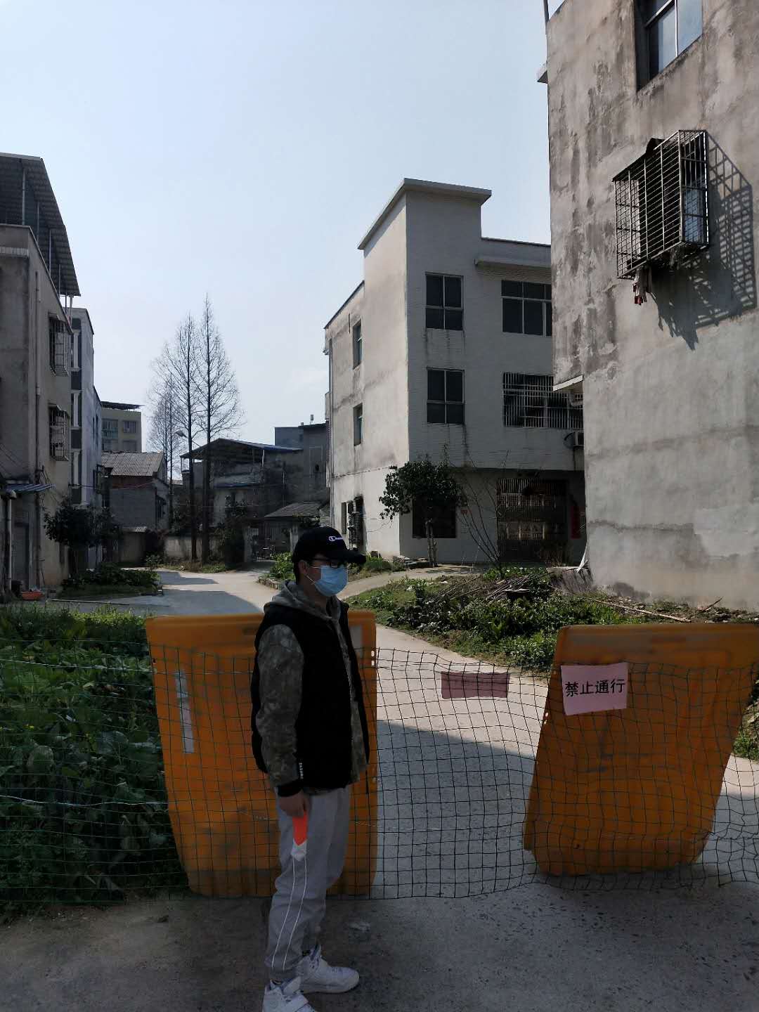 图为金馨宇同学在社区卡点对人员进行管控