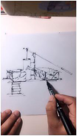 任家永老师视频直播示范“用画笔记乡愁”手绘表现之“手压井”
