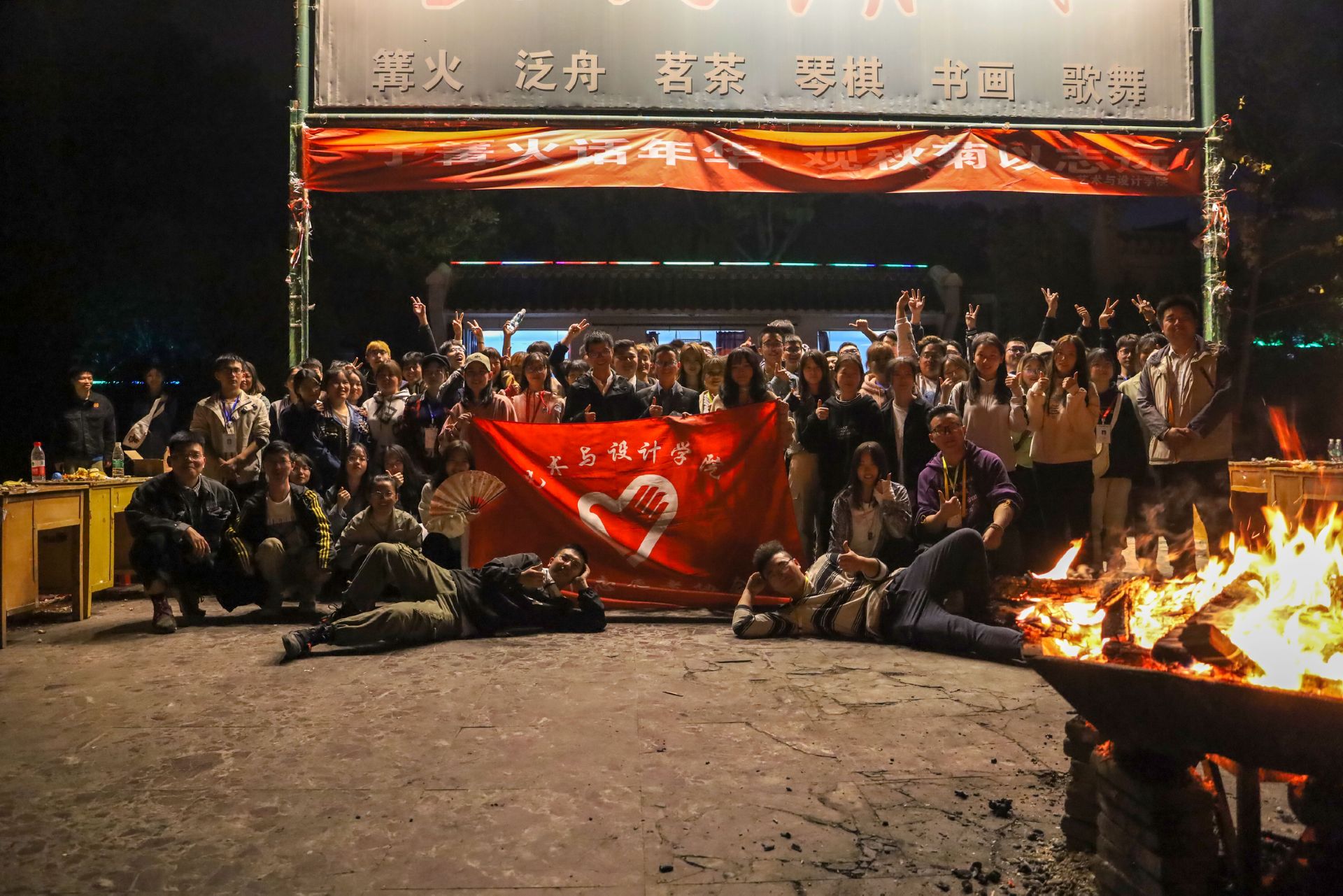 本网讯(通讯员 徐逸飞 摄影 校记者团)11月12日晚,艺术与设计学院青年志愿者协会于晨光湖在水一方举办了2019“予篝火话年华,观秋菊以志远”主题毕业生篝火晚会。院长李国庆、常务副院长任家永、党总支副书记陈海浪、分团委书记李源、学院老师以及2020届全体毕业生参加了本次晚会。