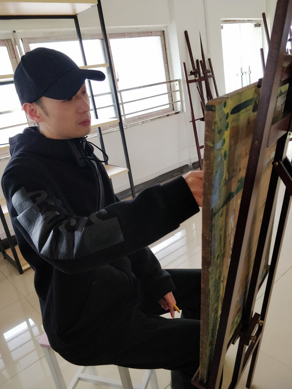 图为饶振毓老师认真作画中
