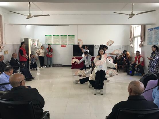 下午两点,全体成员准时到达了养老院,工作人员早早的在那里迎接志愿者的到来。每个志愿者满怀热情,在进入了养老院后都自发的走到老人们的身边,将提前准备好的水果送给老人。这次前往福利院,还为老人们精心准备了节目表演,大合唱、舞蹈、手语舞以及邀请武术协会进行的武术表演等节目,整场节目在老人们的欢声笑语中结束。节目过后,副主席李晨曦组织大家对福利院的卫生进行了打扫。每到一处,志愿者们都认真亲切的与老人交流,听老人们讲自己的故事,尽管存在着一些沟通的障碍,但每一位同学都非常的耐心,表现出了青协良好的风貌。活动最后,志愿者们与爷爷奶奶热情拥抱并合影留念,有不少同学都表示以后有机会会再来看望。