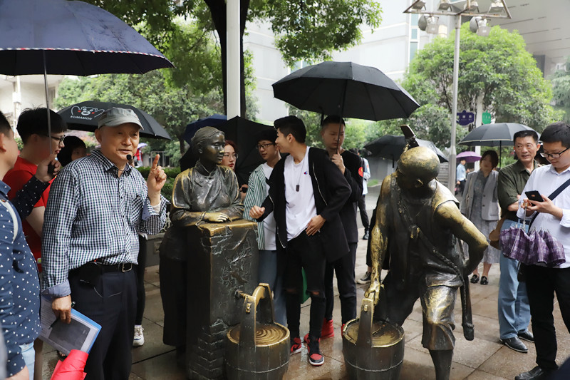 图为王汗吾老师介绍江汉路著名雕塑景观作品