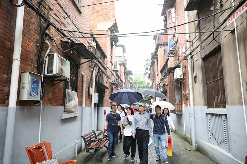 本次活动邀请到武汉市国家历史文化名城保护委员会顾问、武汉地方志办公室原副巡视员王汉吾老师担任向导。从黎黄陂路、鄱阳街到青岛路,王汗吾老师对20多幢历史建筑讲述了他们的前世今生,环境设计专业的同学们不禁被百年前精细高超的建筑工艺所折服;从巴公房子到李凡洛夫公馆,王汗吾老师给师生们讲述了汉口作为东方茶港和万里茶道的辉煌。在进入颇具历史感的同兴里、泰兴里等优秀里份街区后,王汗吾老师情不自禁地说道:“北京有胡同,上海有弄堂,武汉有里分,它是近百年民居文化的一个缩影,是‘中西建筑文化交融’的标本,我们真的需要好好地珍惜这些历史建筑。”