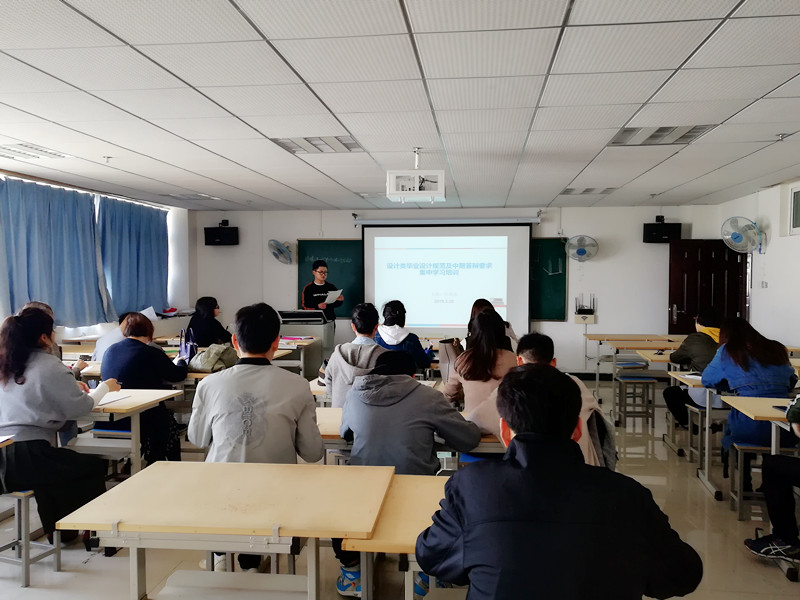 本网讯(通讯员 夏镇杰 摄影蒋晨晨)为做好艺术与设计学院2019届本专科生毕业设计工作,提高毕业设计质量,营造良好的科研学术氛围,艺术与设计学院于3月29日上午,在钱学森大楼705教室召开了毕业设计规范及中期答辩事项专题培训会。培训会由我院常务副院长任家永主讲,全体毕业设计指导老师参加了此次培训会。